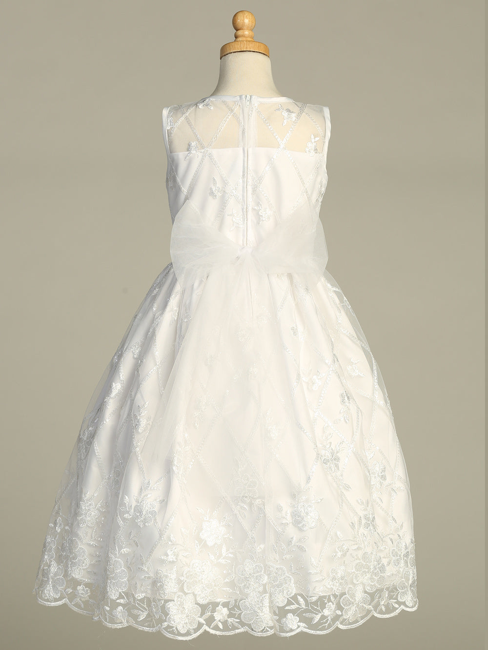 Elegant Embroidered Tulle Dress with Sequins and Detail on Waist