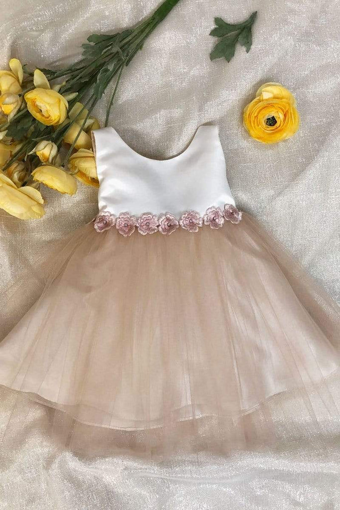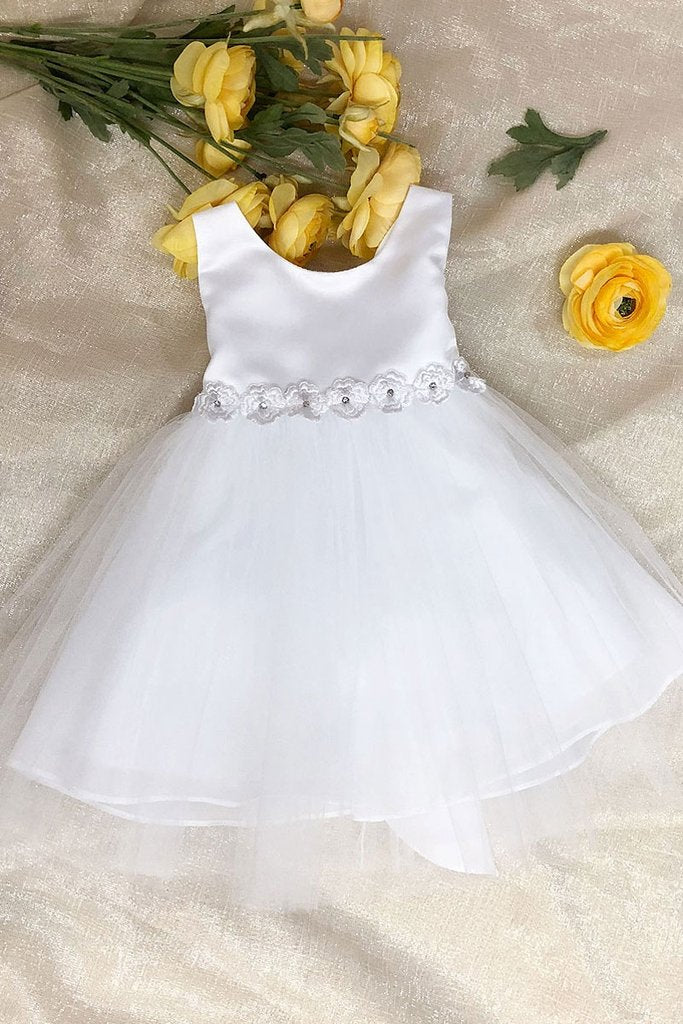 Classic and Elegant Satin Bodice with Tulle Skirt - comes with built in Sash and detachable Satin Sash