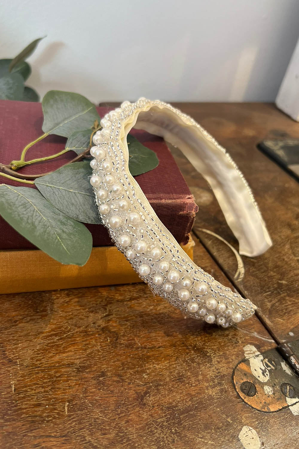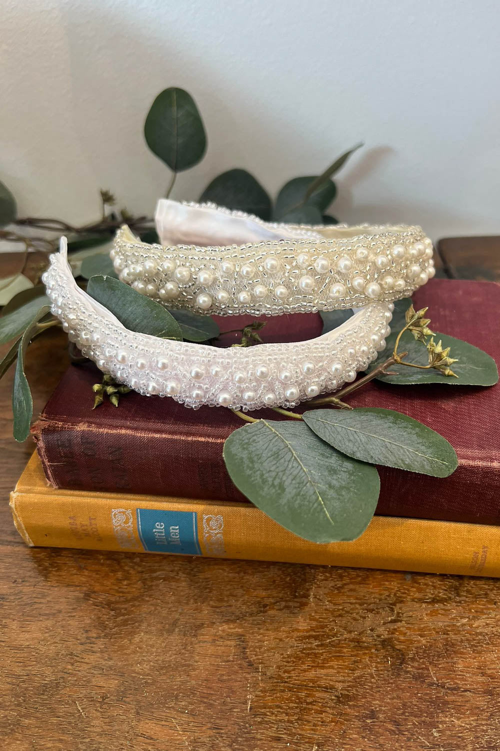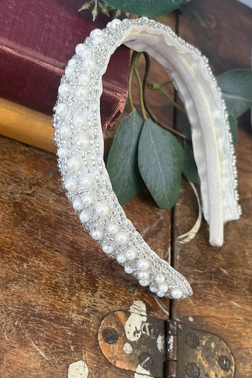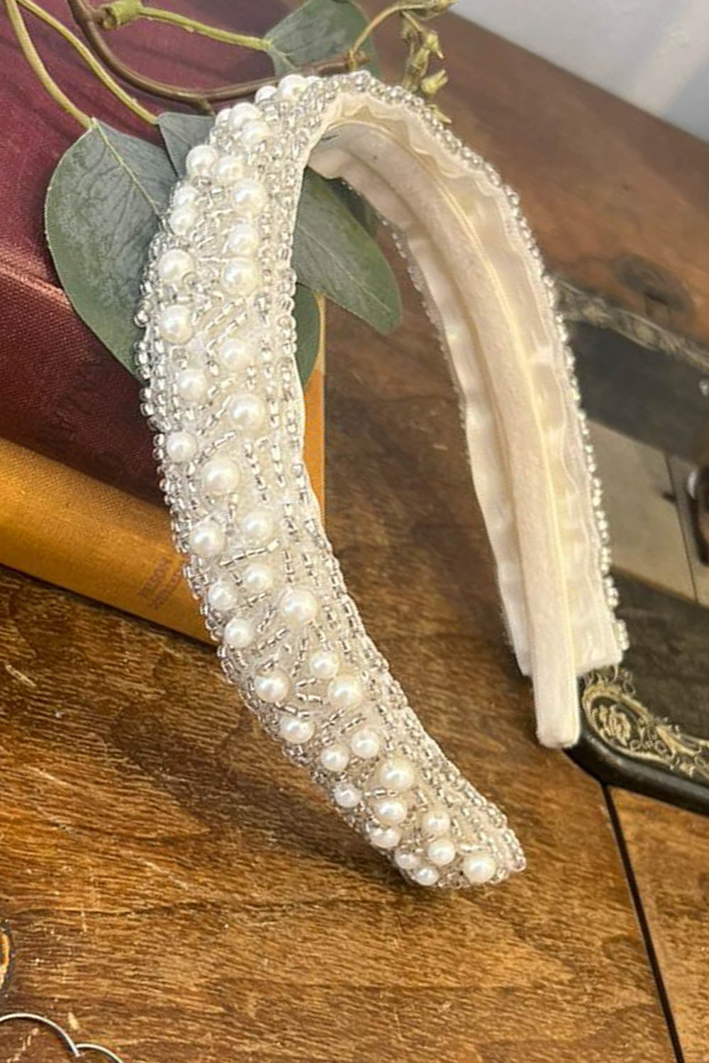 Gorgeous Pearl Headband which beautifully matches our Elsie dress and Pearl sash