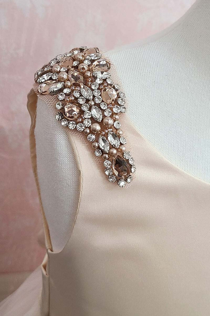 Please contact us if you would like to customize your dress to the *Beaded Shoulder Patch with Crystal Belt* style. Cost is $120.00.